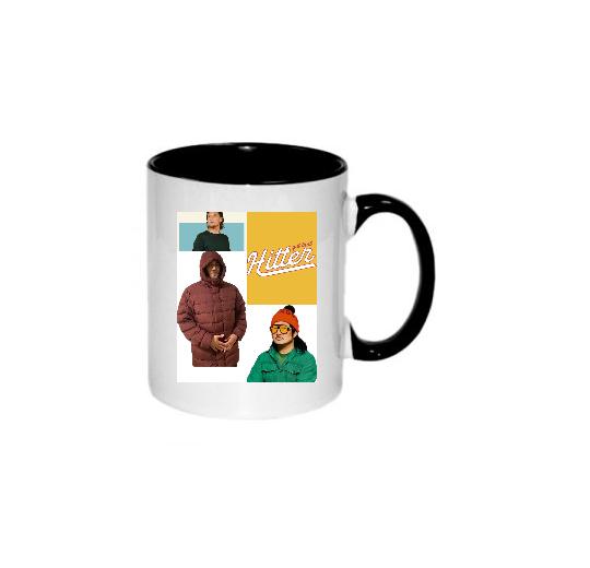 10oz Töff Bolli hvítur með svörtu handfangi og svörtu ofan í