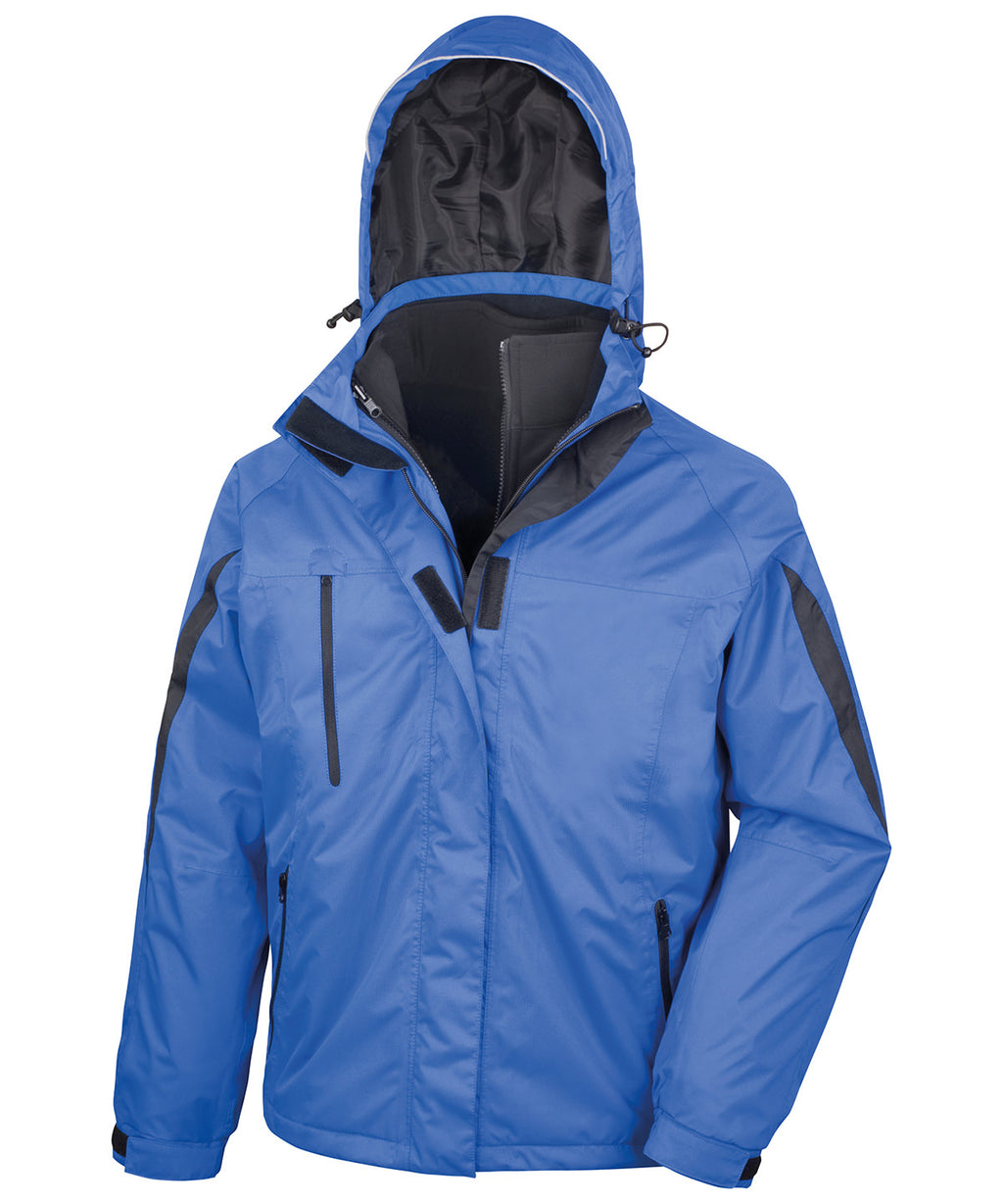Top of the range, 3-way wear jacket. Breathable, water and wind proof protection. Soft, high stretch inner softshell jacket. Motor industry favourite. Matches R400F. Outer jacket: Full front 2-way zip. Tear release outer double storm flap with studs. Front and chest zip pocket. Elasticised cuff with tear release adjuster. Removable and adjustable lined hood with reflective peak. Adjustable shock cord hem. Ripstop detail fabric. Tricot lined collar. Taped seams. Secondary inner zip to attach. Softshell inner jacket: Full front zip. Inside and front side pockets. Straight edge cuff.Decoration Guidelines:Decorating methods: Embroidery & Transfer print Decorators access point: Inside left chest & back Inner : Open. Oeko-Tex certified.