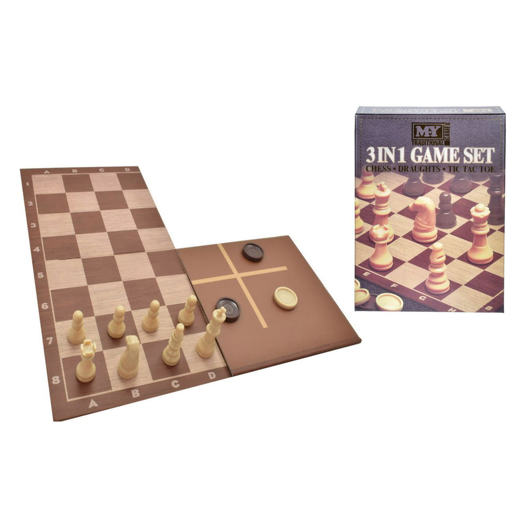 3In1-skák, Checkers og mylla (Tic Tac Toe ).