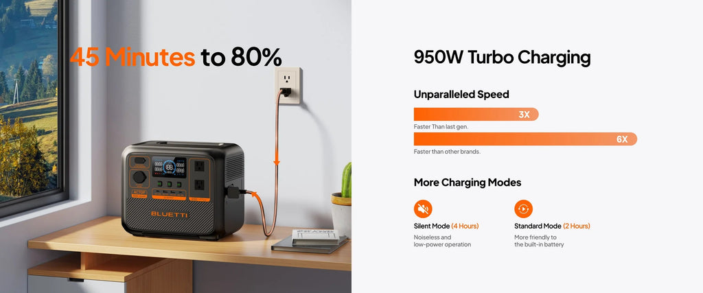 Ofurhröð 950W Turbo hleðsla - Tryggir endalaust rafmagn á útivist