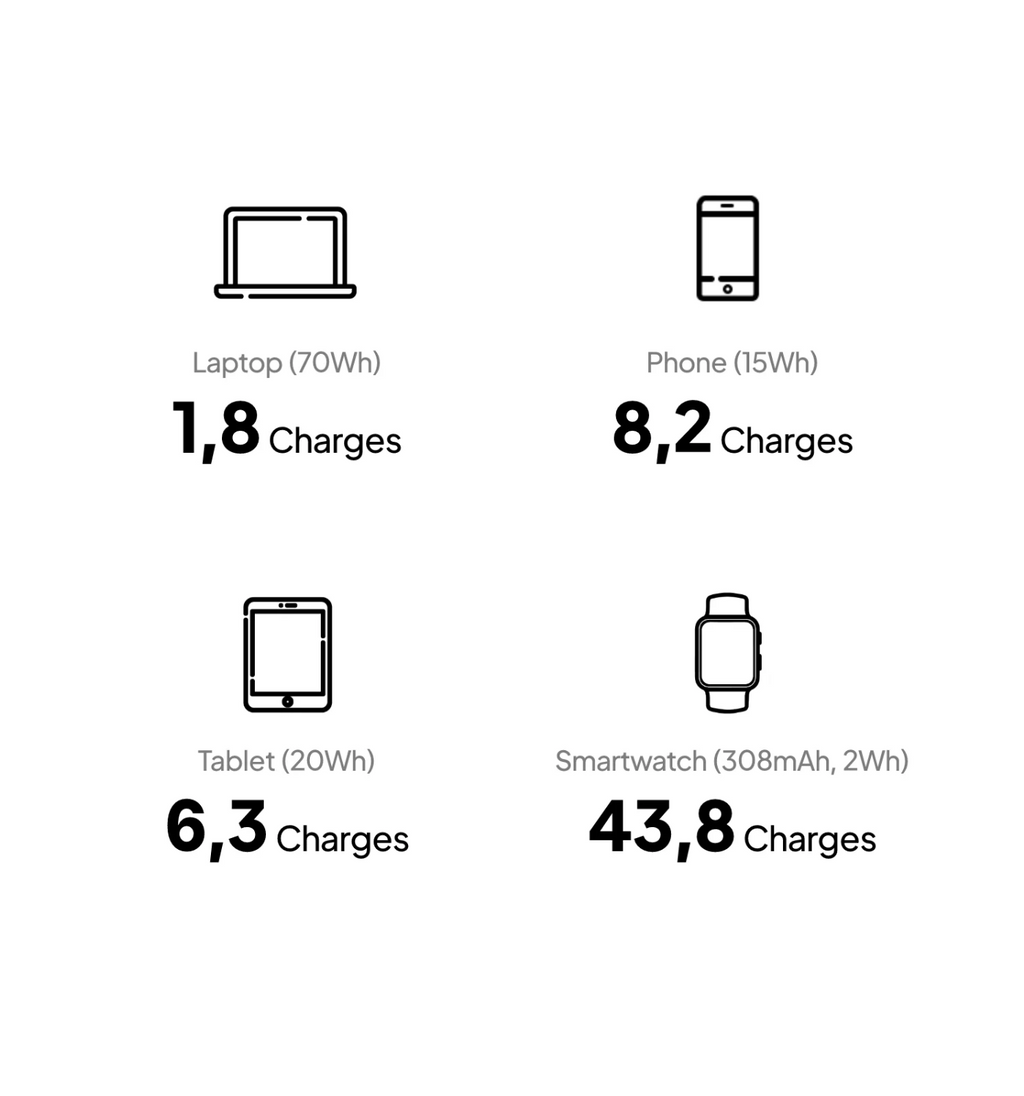 Vertu alltaf með fulla hleðslu: Hladdu fartölvuna þína, símann og önnur tæki áreynslulaust á meðan þú ert í fjarvinnu, í útilegu eða ævintýraferð - haltu öllu full hlöðnu og tilbúnu í ævintýrin.
