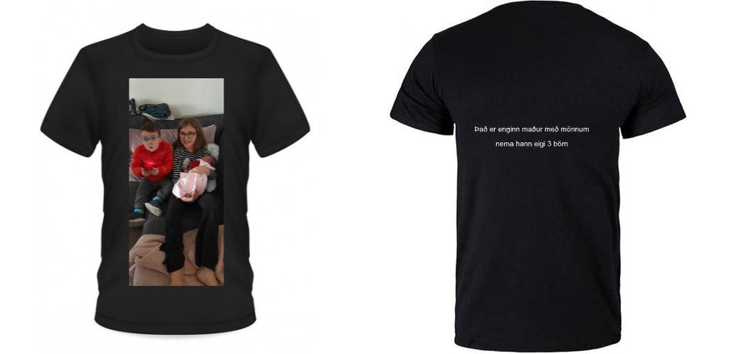 Athugið merkingin bætist ofan á verðið um ca. 2000 kr. fyrir einfalda text eða mynd hönnun. Þú getur fengið aðstoð við hönnunina með því að senda okkur skilaboð í athugasemd eða pósti á info@fotomax.is. Tekið er 2.500 kr. gjald fyrir aðstoðina fyrir hverja mynd eða texta sem setta er á flíkina.