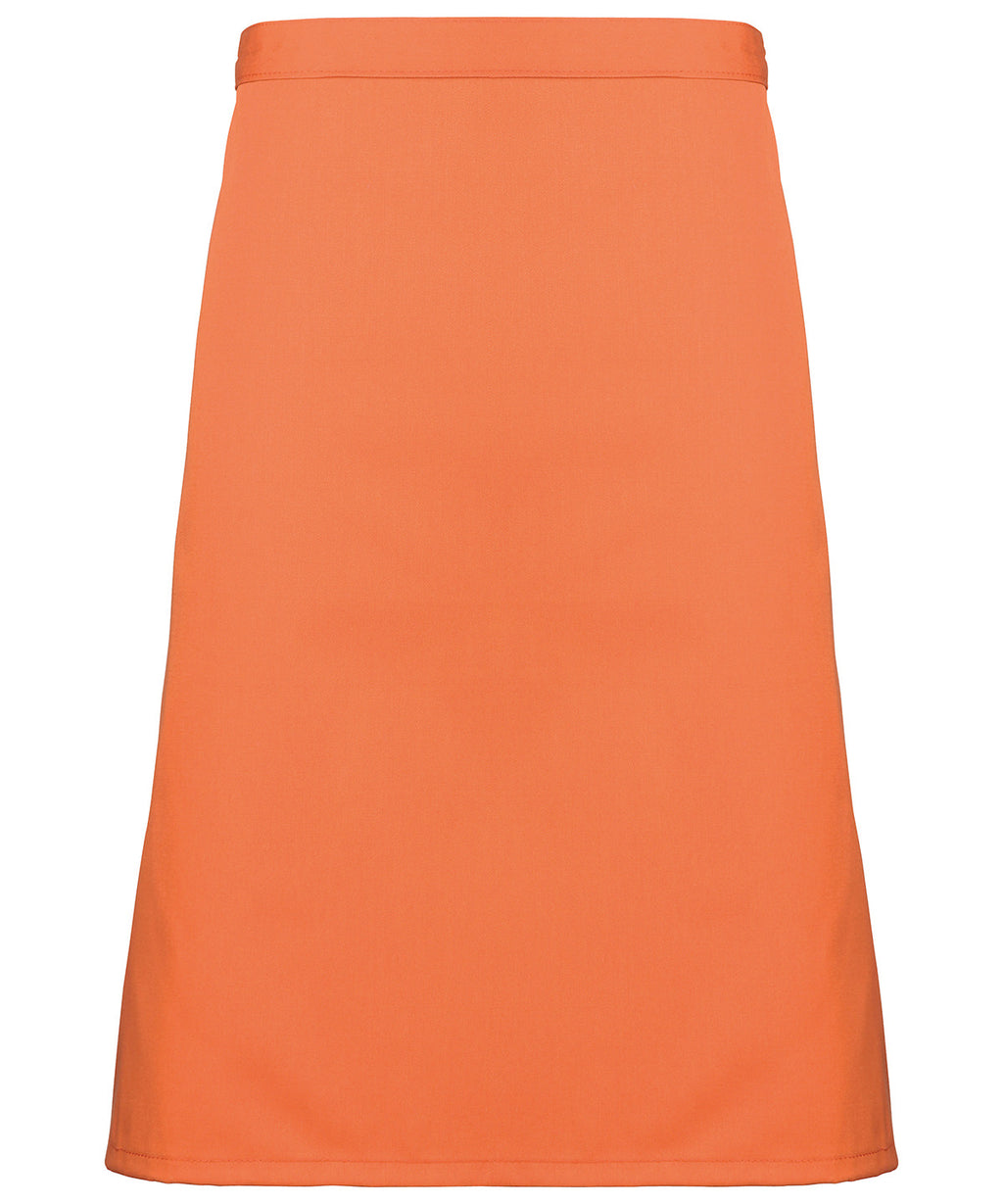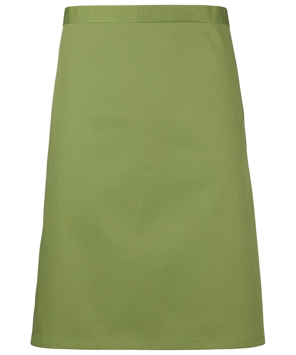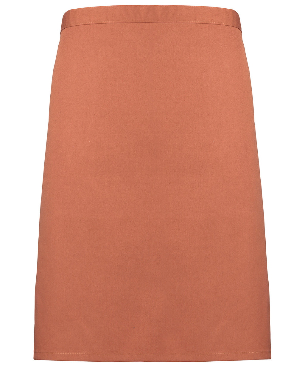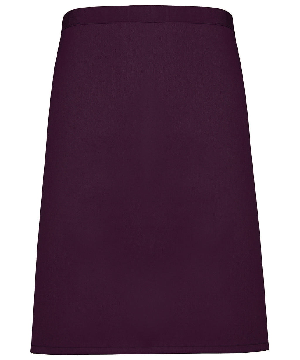 A mid-length waist apron available in 36 colours from the Premier 'Colours Collection' where the customer is guaranteed an exact pantone match across the range. A coloured apron that has ties long enough to double around the front.