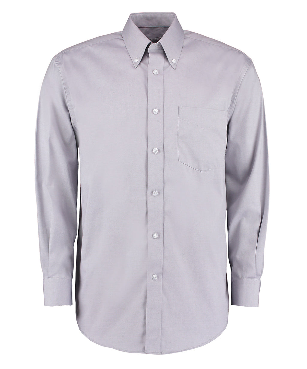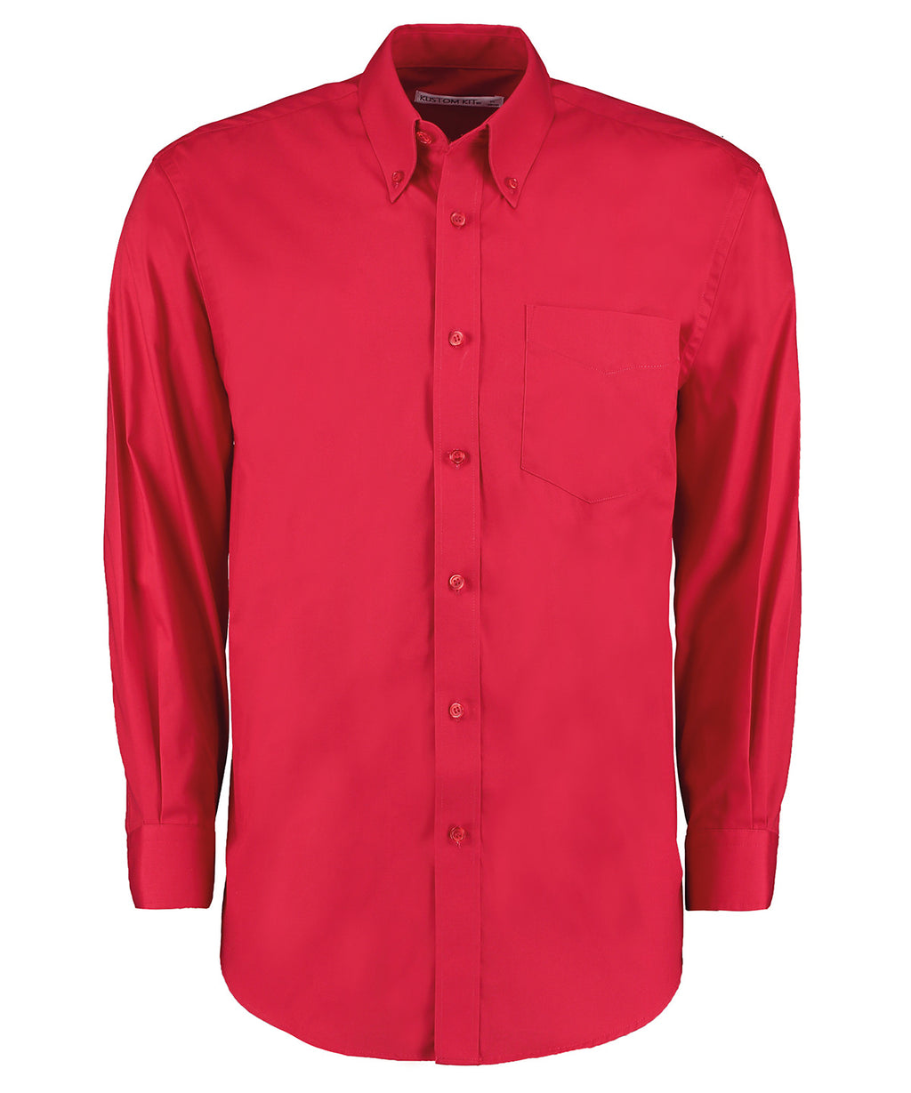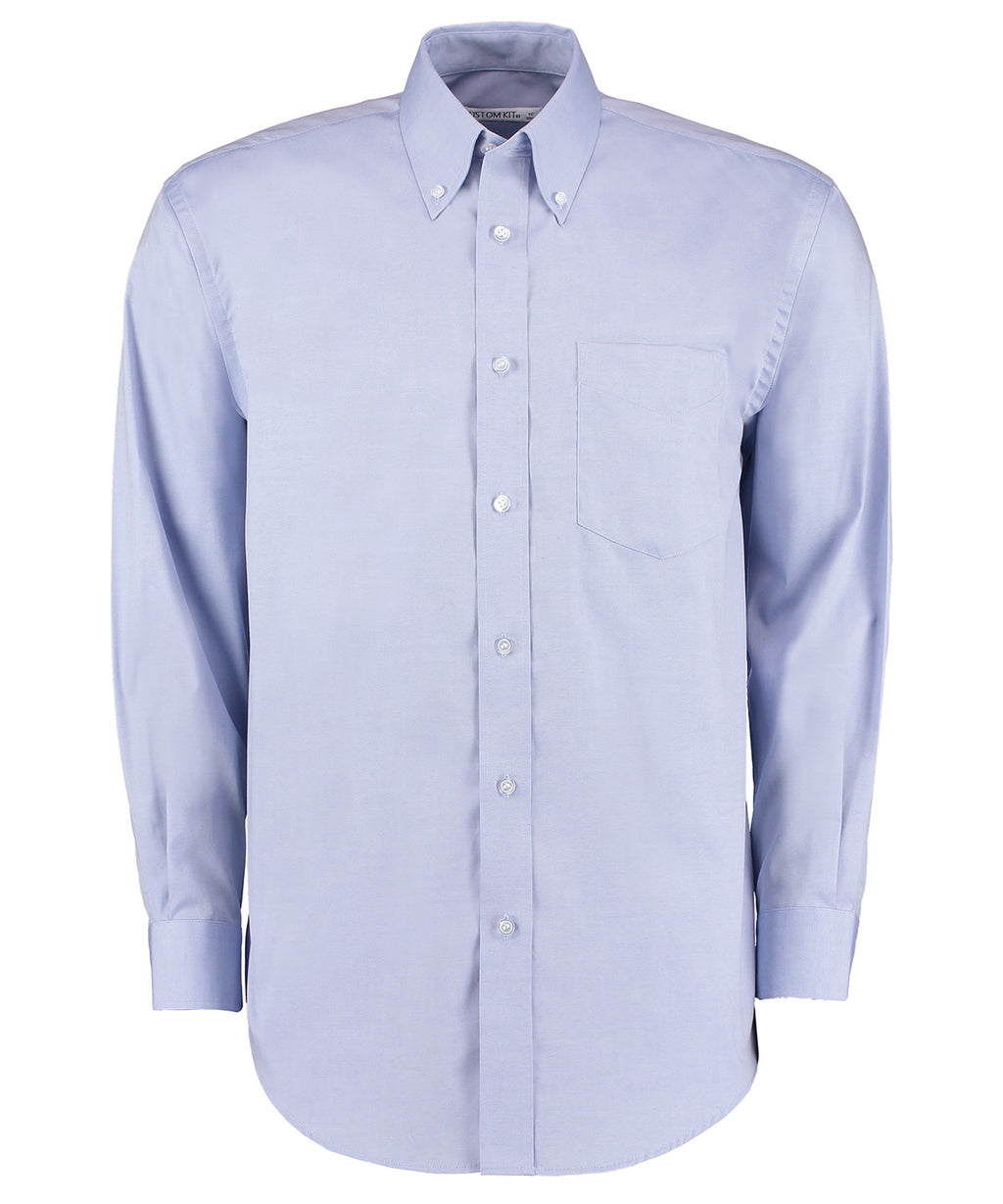 Fused stand-up button down collar. Central back pleat. Rounded hem. Chest pocket to left side as worn. 1-button adjustable cuff with 1-button cuff placket. Double-stitched side and sleeve seams. Spare buttons. Kustom Kit® woven back neck label. SEDEX certified. Oeko-Tex certified.