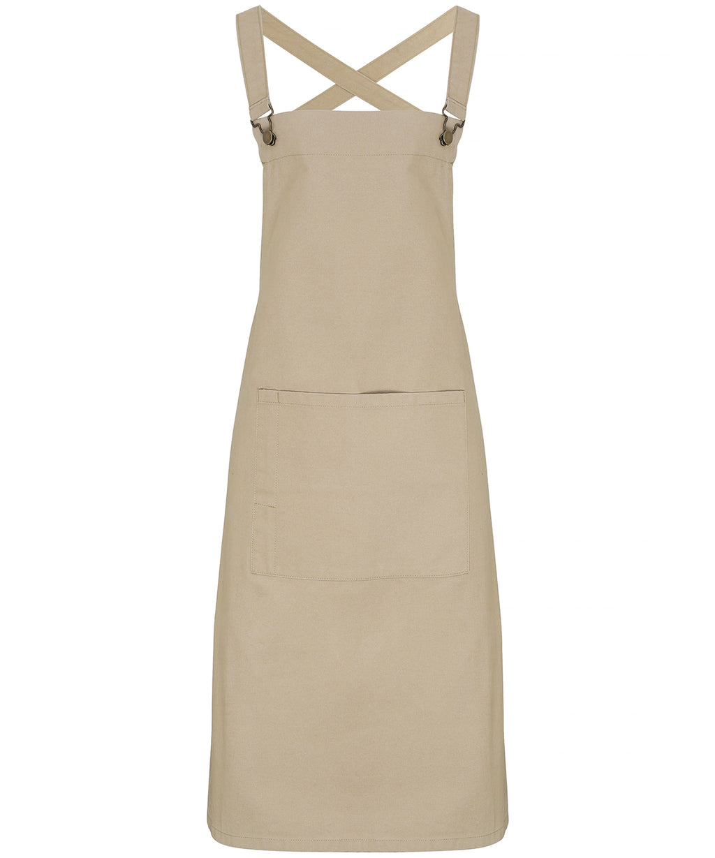 Self-fabric ties that are fastened to the main body of the apron with dungaree style buckles. The straps then hook over the shoulders, cross over at the back, loop through the large eyelets at the waist and tie neatly at the back. Also features a useful front centre pocket with combined pen slot. This style is designed to be paired with our PR119 Interchangeable apron straps should you want a contrast colour or fabric to the main body of the apron. WRAP certified. Oeko-Tex certified. BSCI certified. Reach certified. SEDEX certified.