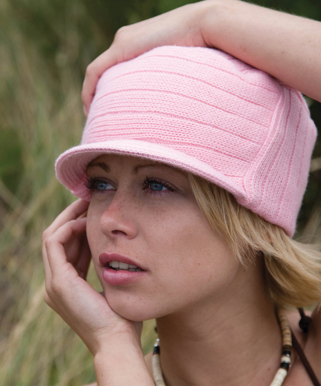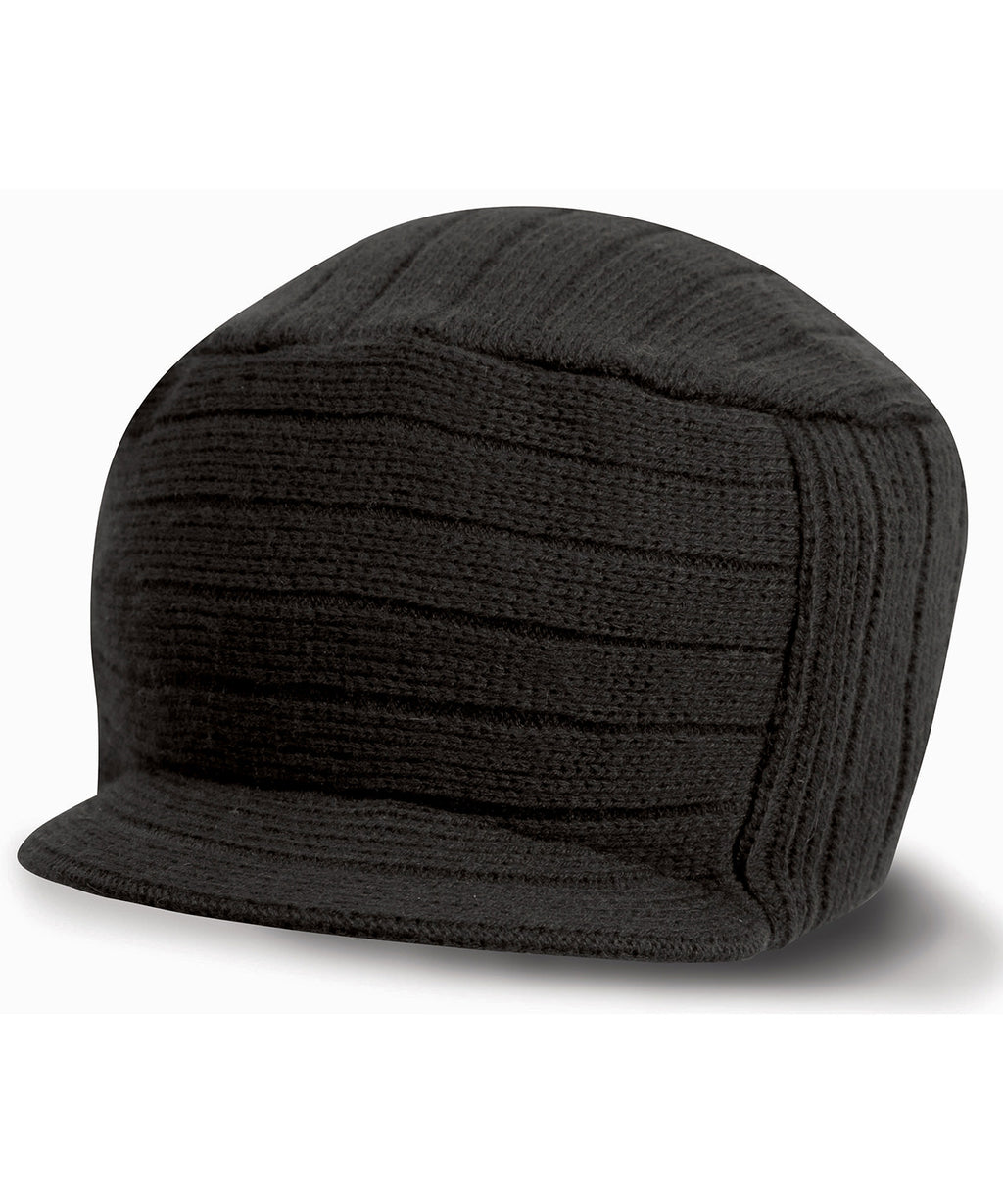 Stylish large-rib heavyweight knit, double thickness for added warmth with fashionable pre-curved short peak.