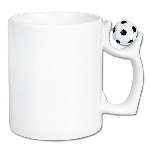 Keramikbolli með litlum fótbolta á handfanginu.