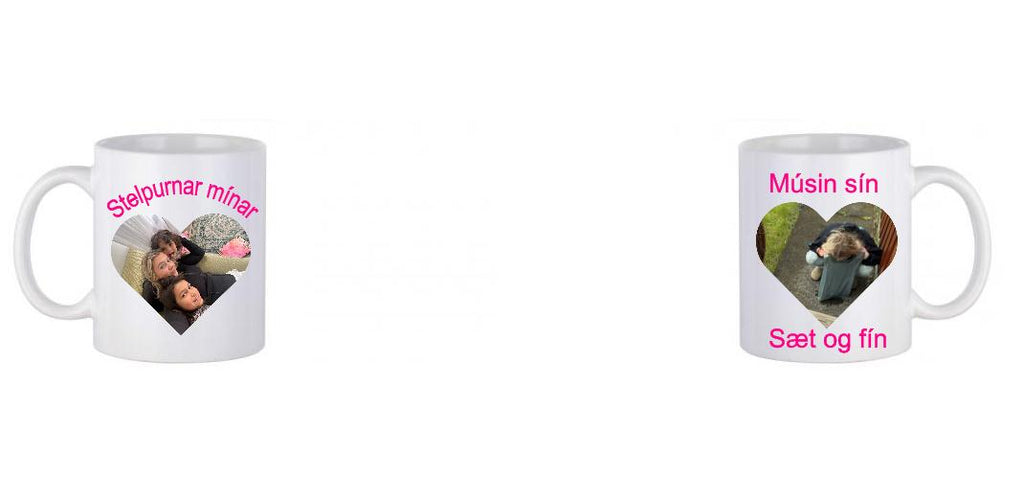 Hannaðu þinn eigin bolla í hönnuðinum hér til hliðar með því að smella á græna hanppinn.