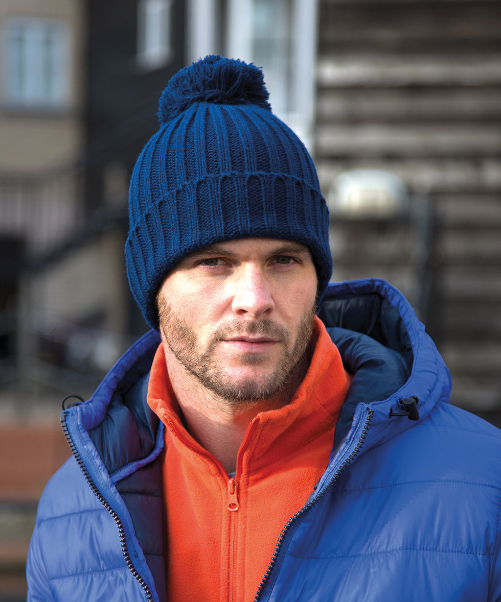 Chunky knit. Pom-pom. Long length. Foldable hem. Cold weather protection. Extremely warm. Fashion style. Longer fashion length. Lightweight.Decoration Guidelines:Decorating methods: Embroidery. Decorators access point: Open. Oeko-Tex certified.