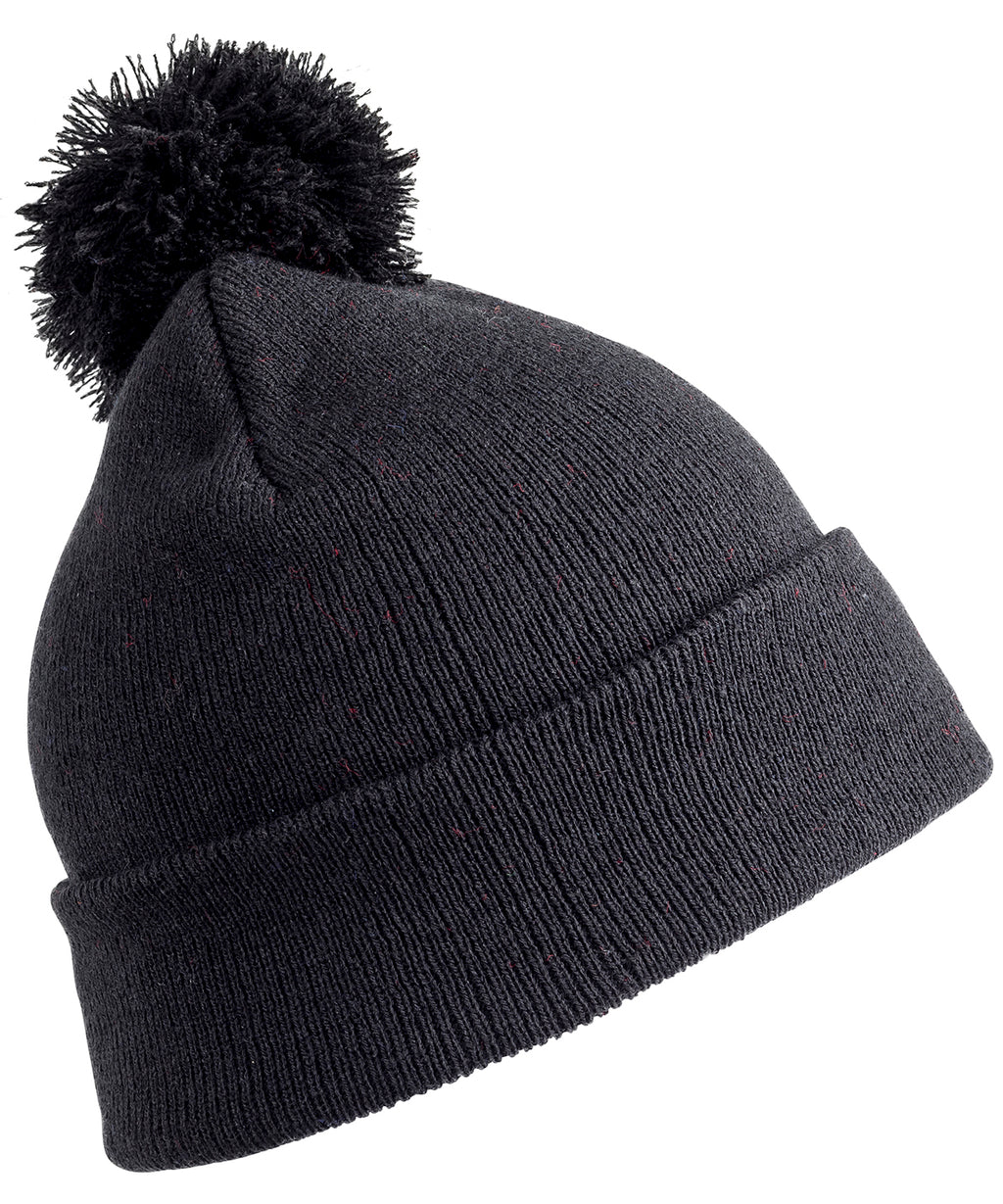 Heavyweight, double thickness knitted beanie with deep fold cuff and pom pom decoration. Oeko-Tex certified.