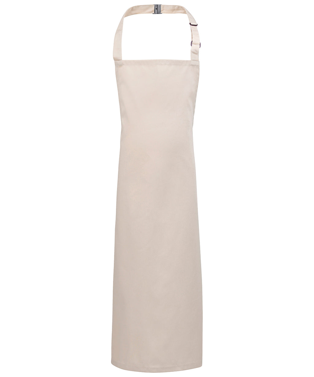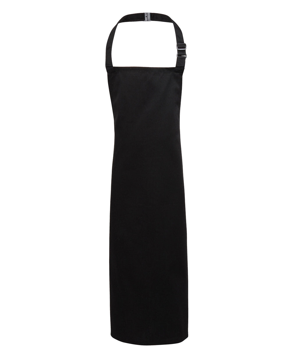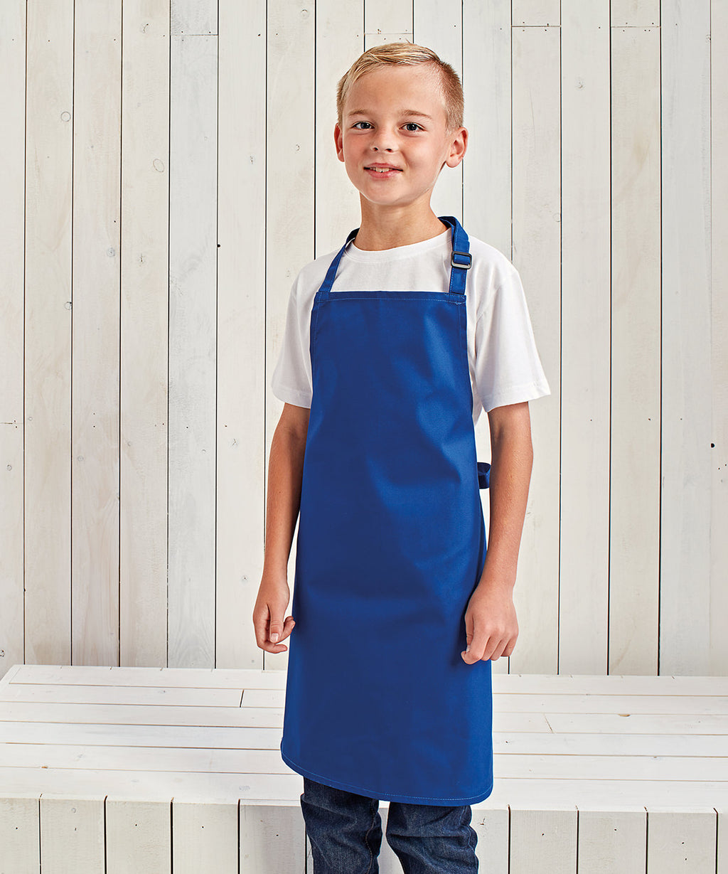 Classic Premier children's bib apron. Self fabric neckband. Self fabric ties 50cm long. Width: Infant 43cm, Junior 48cm. Length: Infant 53cm, Junior 63cm. Features a snap safety release buckle. BSCI certified. Reach certified.
