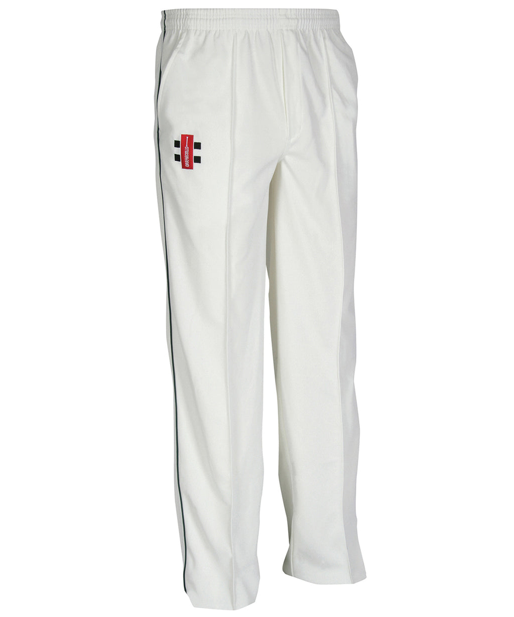 100% polyester hard wearing match specific cricket trouser offering durability and comfort for long days in the field. Unhemmed finish allowing the customer to size to their specification.