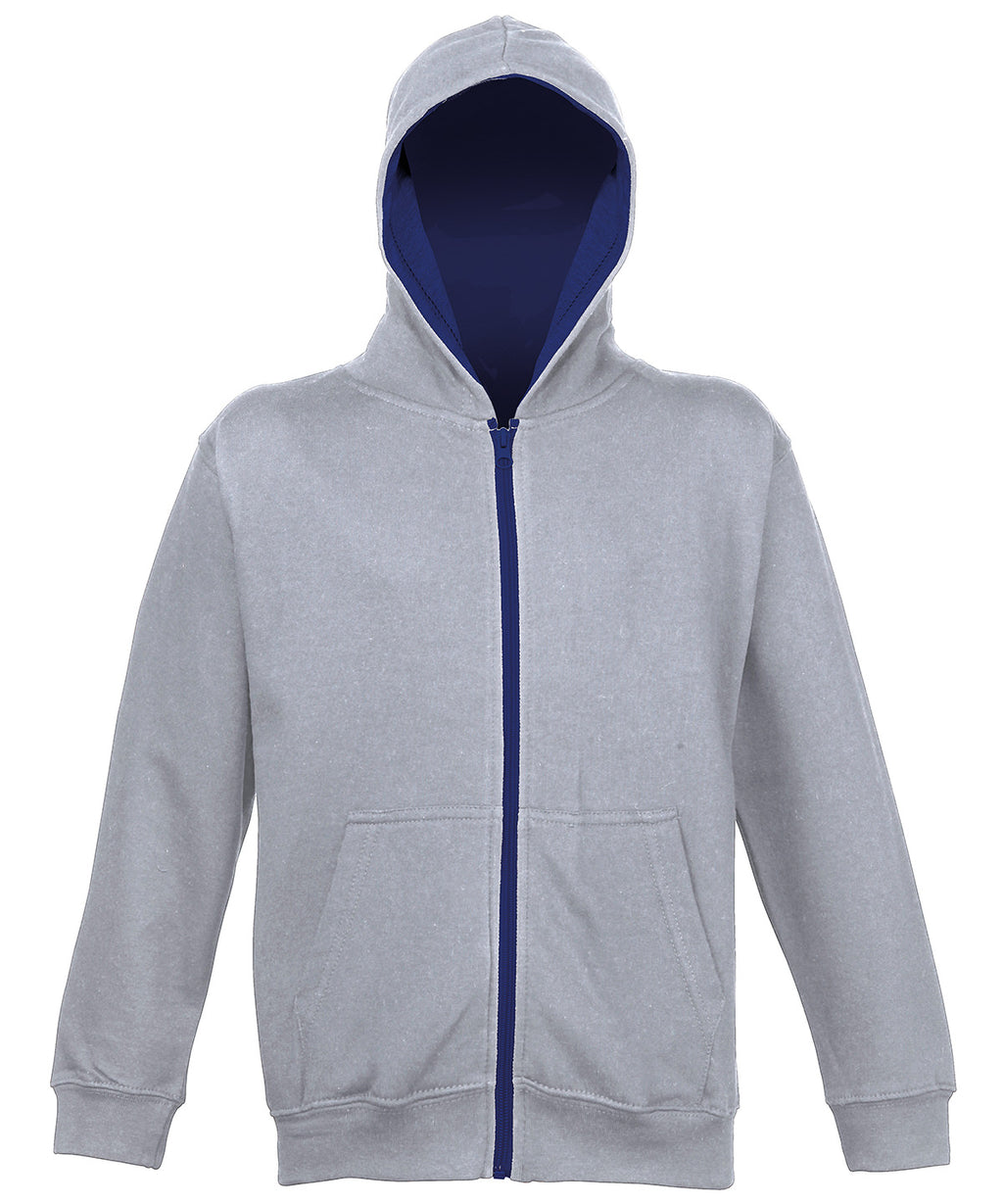 Full zip hoodie with contrast plastic zip. Twin needle stitching detail. Double fabric hood with contrast inner. Kangaroo pouch pocket. Ribbed cuff and hem. No drawcords to comply with EU regulation. Soft cotton faced fabric creates ideal printing surface.Worldwide Responsible Accredited Production (WRAP) certified production. Simple tear out label makes it perfect for rebranding. Brushed inner fleece.