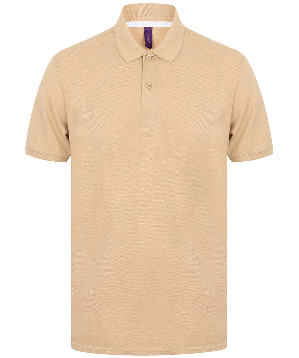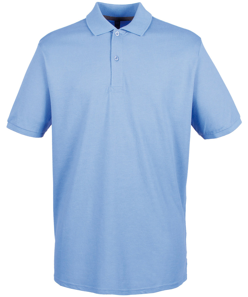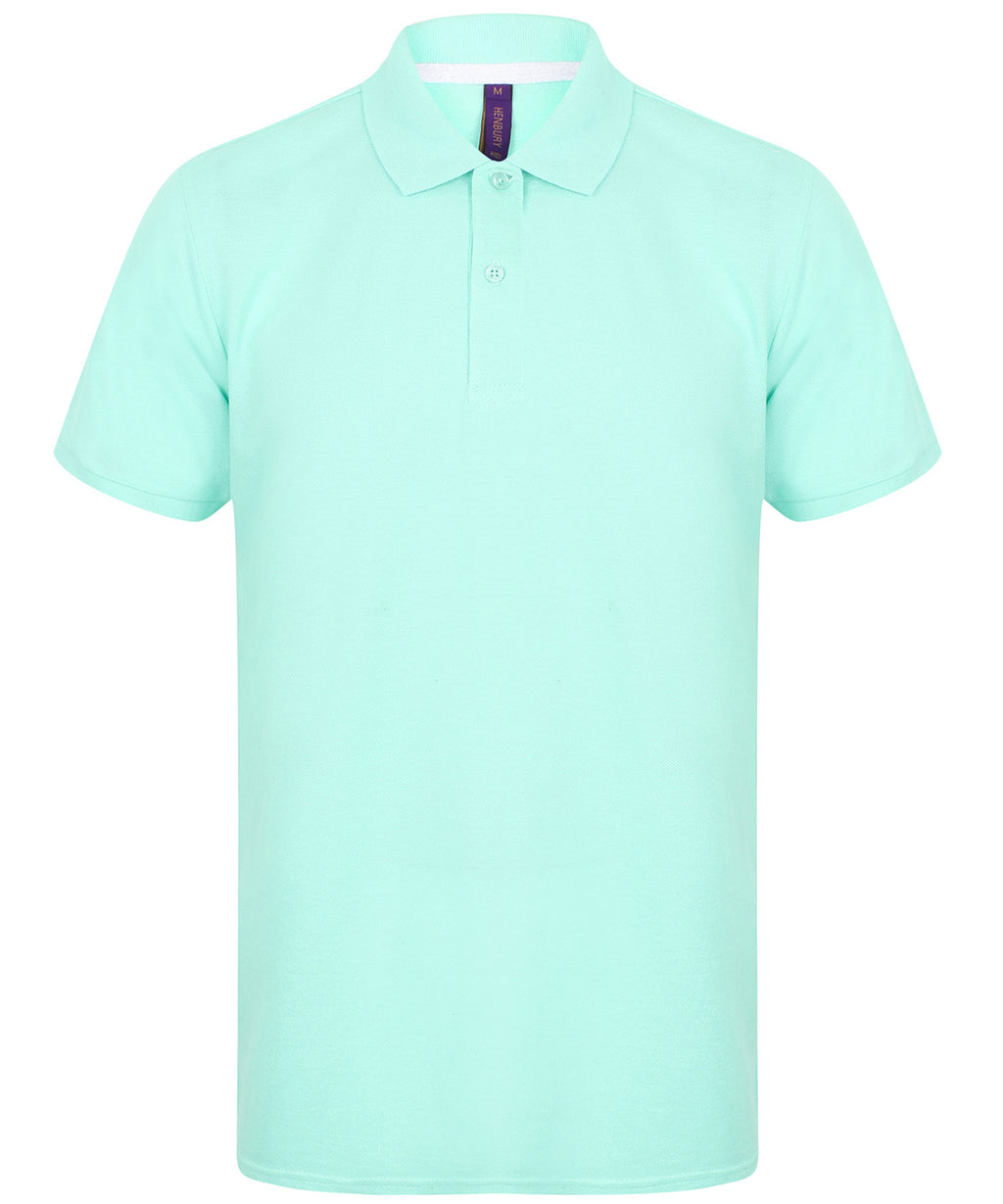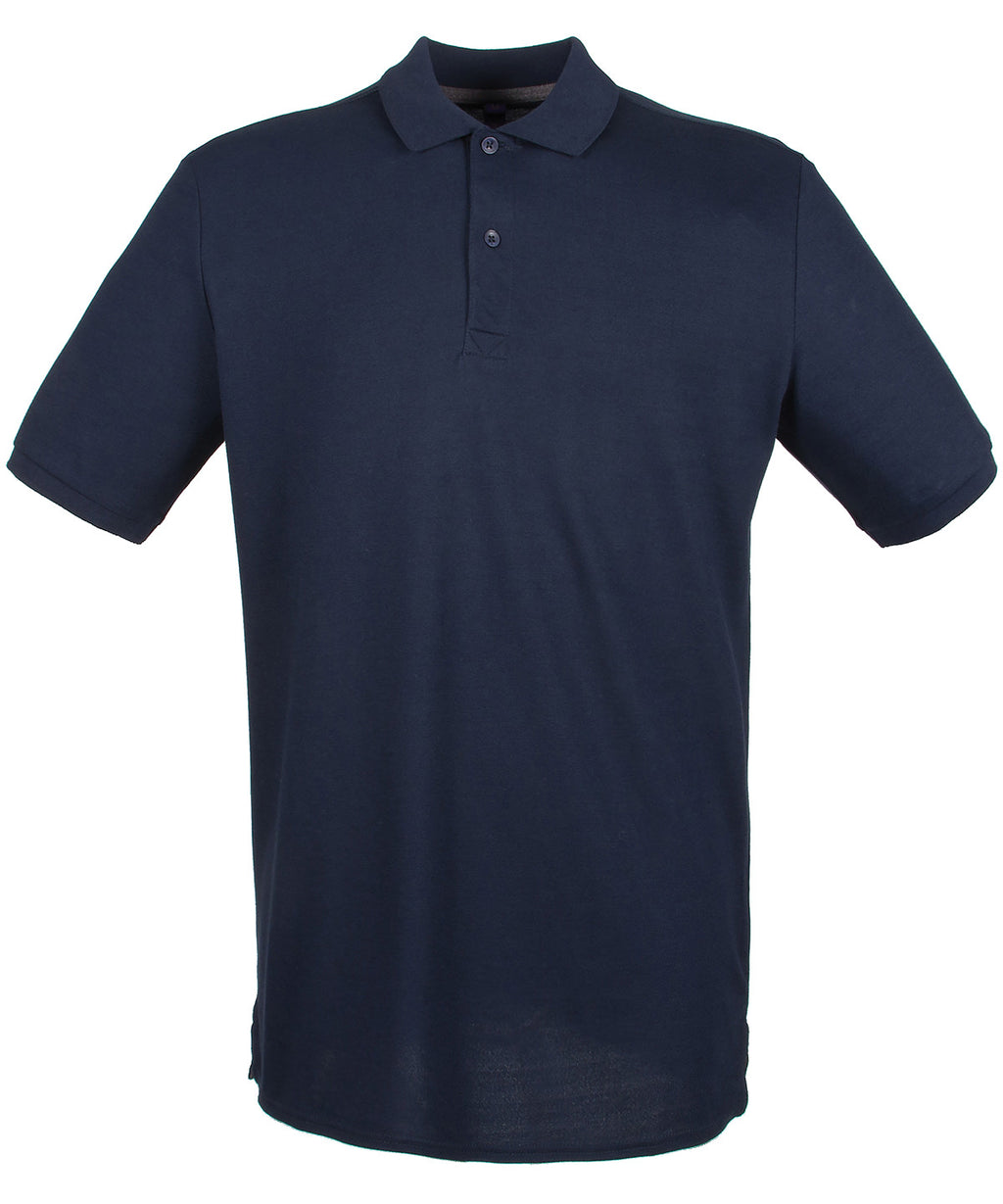 Modern-fit in a lightweight micro-fine piqué with a short point collar, fitted sleeve and cuffs for a modern and fresh new look. Micro-fine piqué is ideal for printing. 2 Button placket, Dyed to match buttons. Contrast herringbone tape in back neck and side vents. Henbury Cut-out back neck brand label. WRAP certified.
