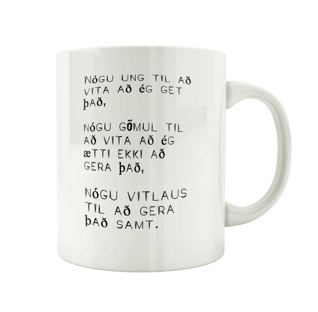 Nógu ung til að vita að ég get það, nógu gömul til að vita að ég ætti ekki að gera það, nógu vitlaus til að gera það samt. - Bolli