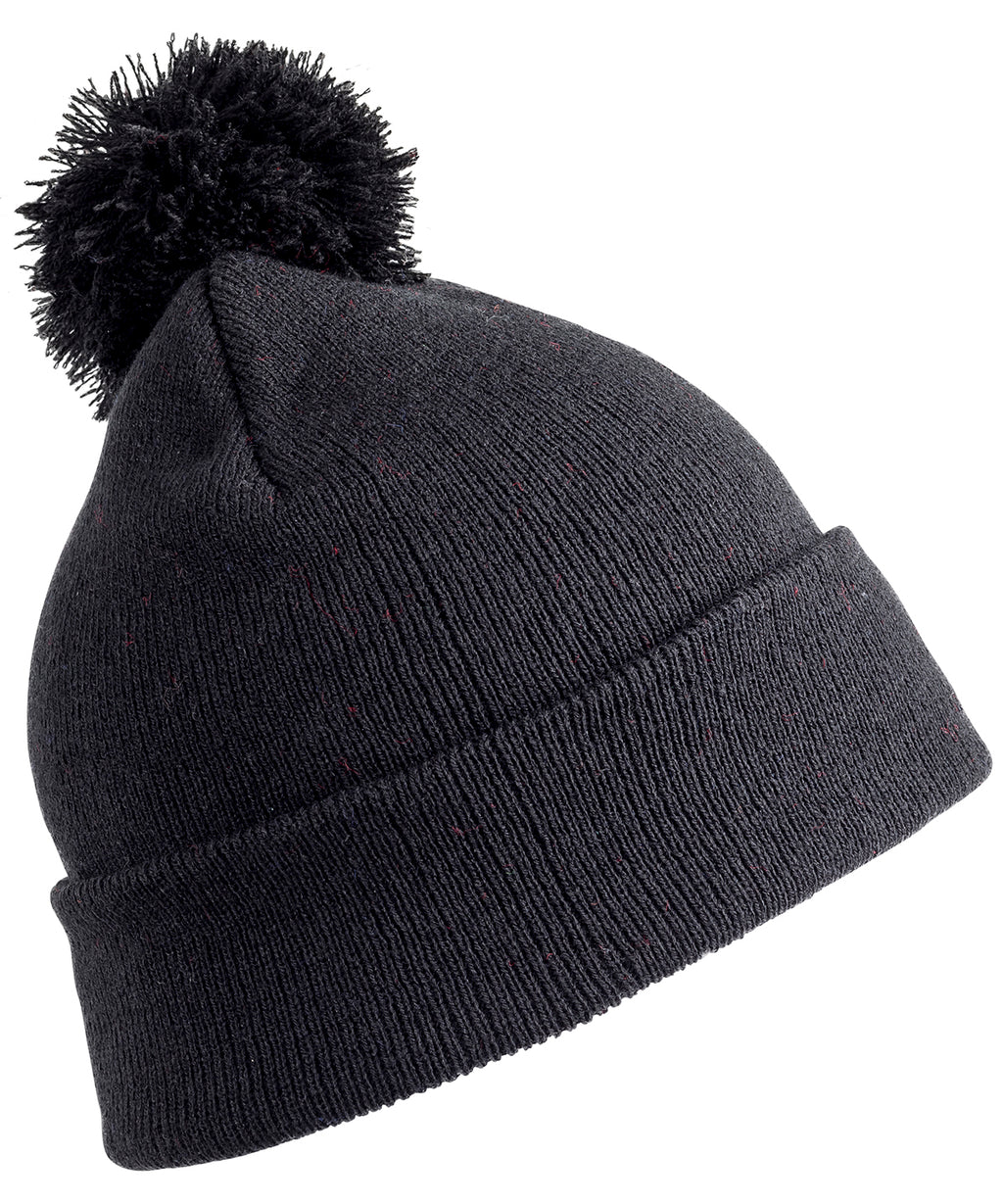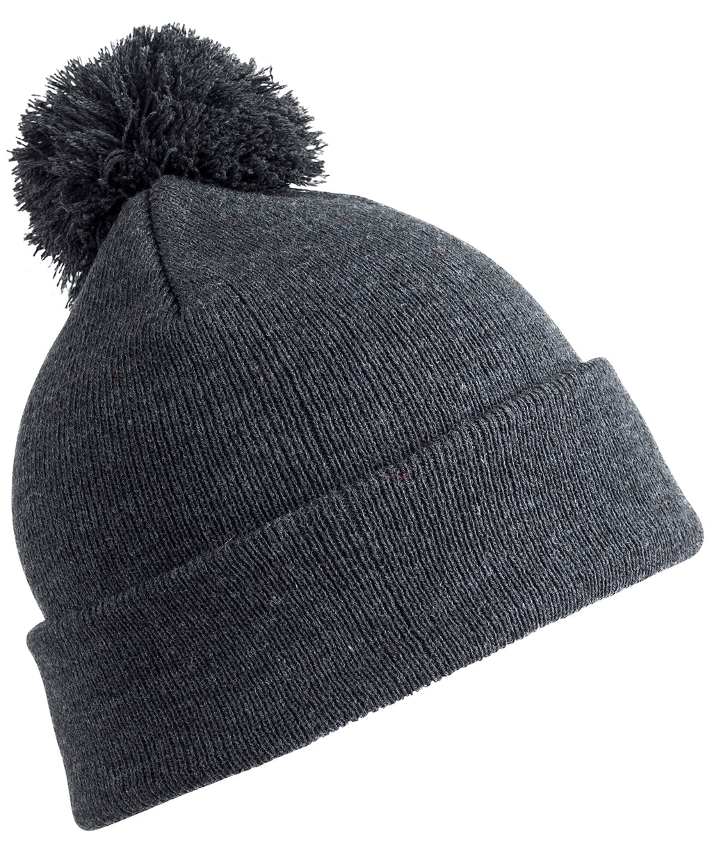 Heavyweight, double thickness knitted beanie with deep fold cuff and pom pom decoration. Oeko-Tex certified.
