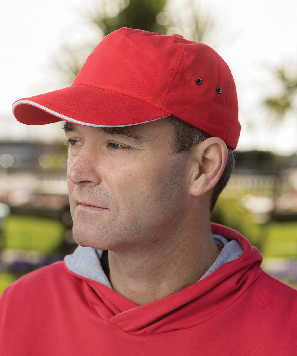 5-panel Seamless front panel. Pre-curved peak with 4 stitch lines. Suitable for embroidery and print. Seamless front panel. Contrasting colour sandwich peak. Fabric size adjuster with brushed metal buckle. Ultimate 5-panel low profile cap. Decoration Guidelines: Decorating methods: Embroidery & Transfer print. Decorators access point: Open.