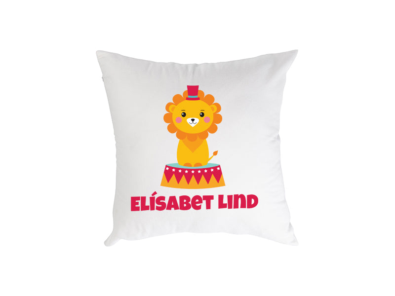 40x40 Satín púði með sirkus ljóni og nafni barnsins