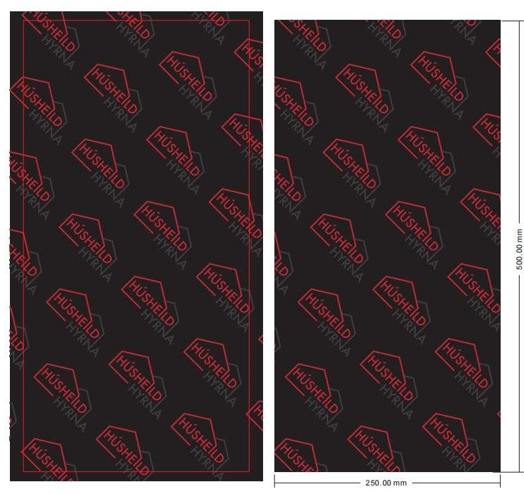 Hægt að setja eitt stórt merki / logo eða mörg lítil sem mynda munstur. Einnig hægt að prenta myndir, texta og annað. Miklir möguleikar.