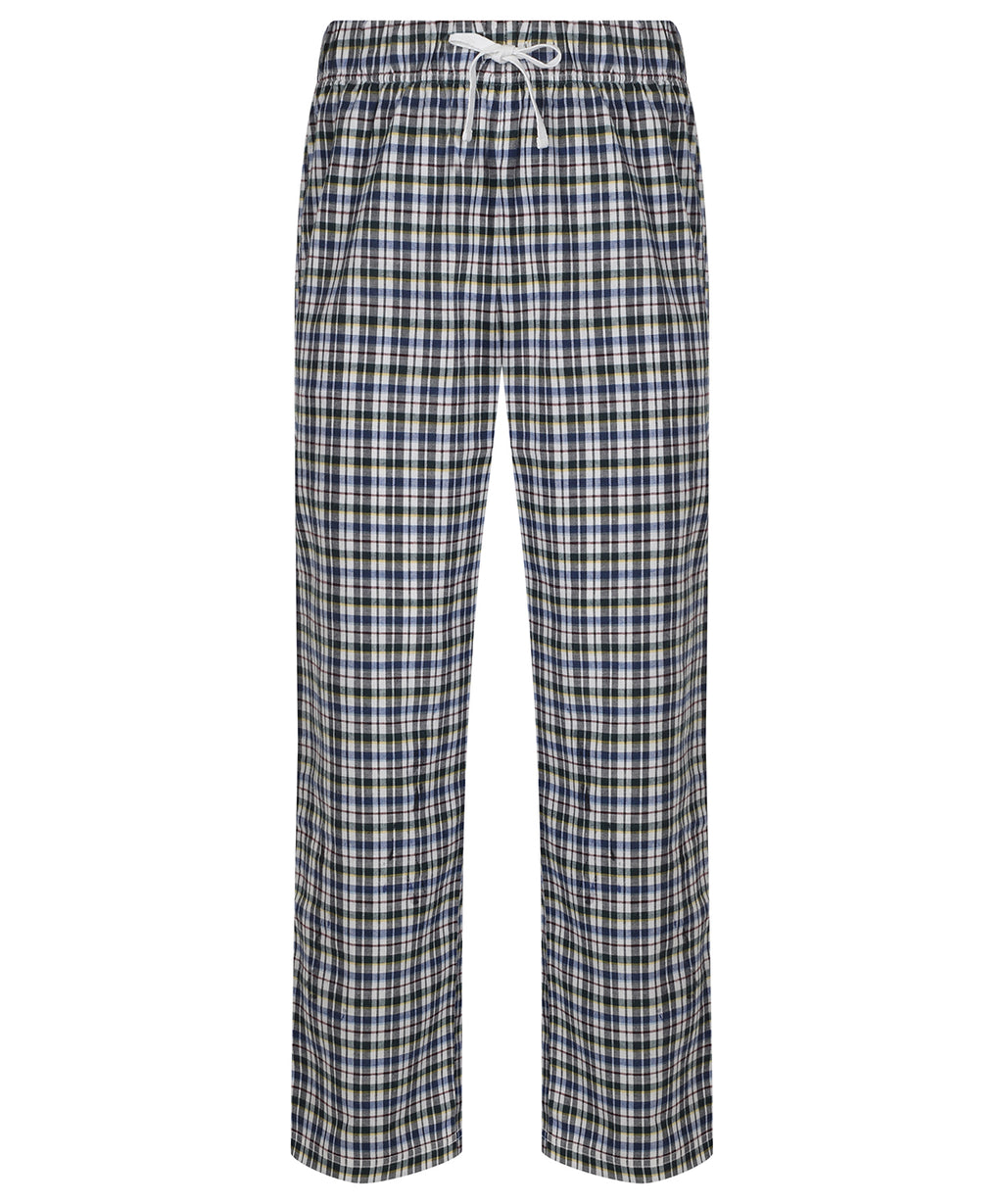 Woven tartan lounge pants with plain hem. Full elasticated waist with contrast mock drawcord. Tear-out label. BSCI certified. Vegan certified.