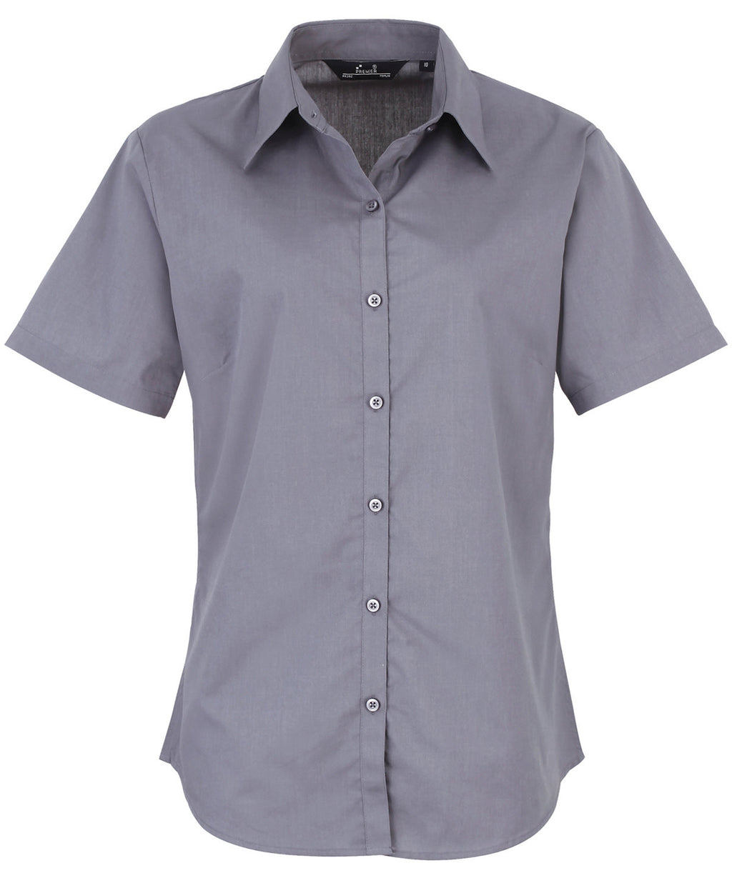 A ladies short sleeved Poplin blouse with semi fitted styling, available in 30 colours. The blouse features soft collar styling with bust and back darts and a rounded bottom hem for an attractive piece of workwear for women.
